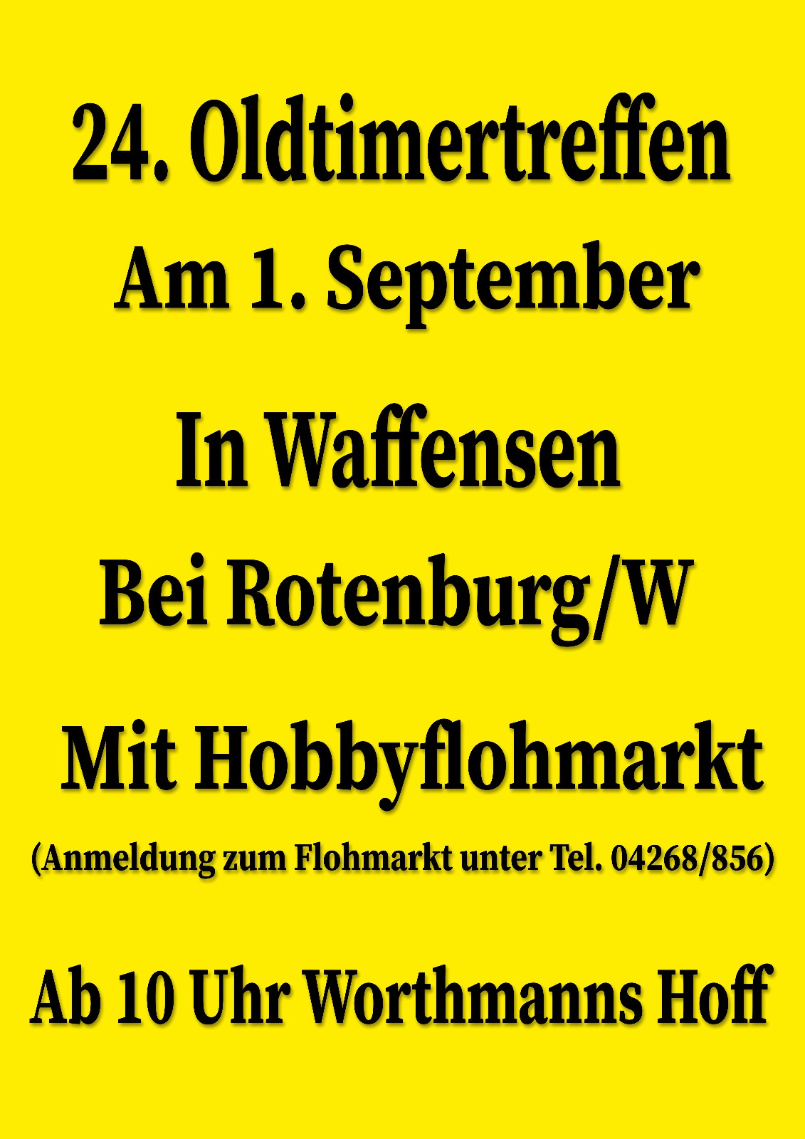 Aufgrund häufiger Nachfrage kommt hier einmal die Info für das diesjährige Oldtimertreffen in Waffensen.